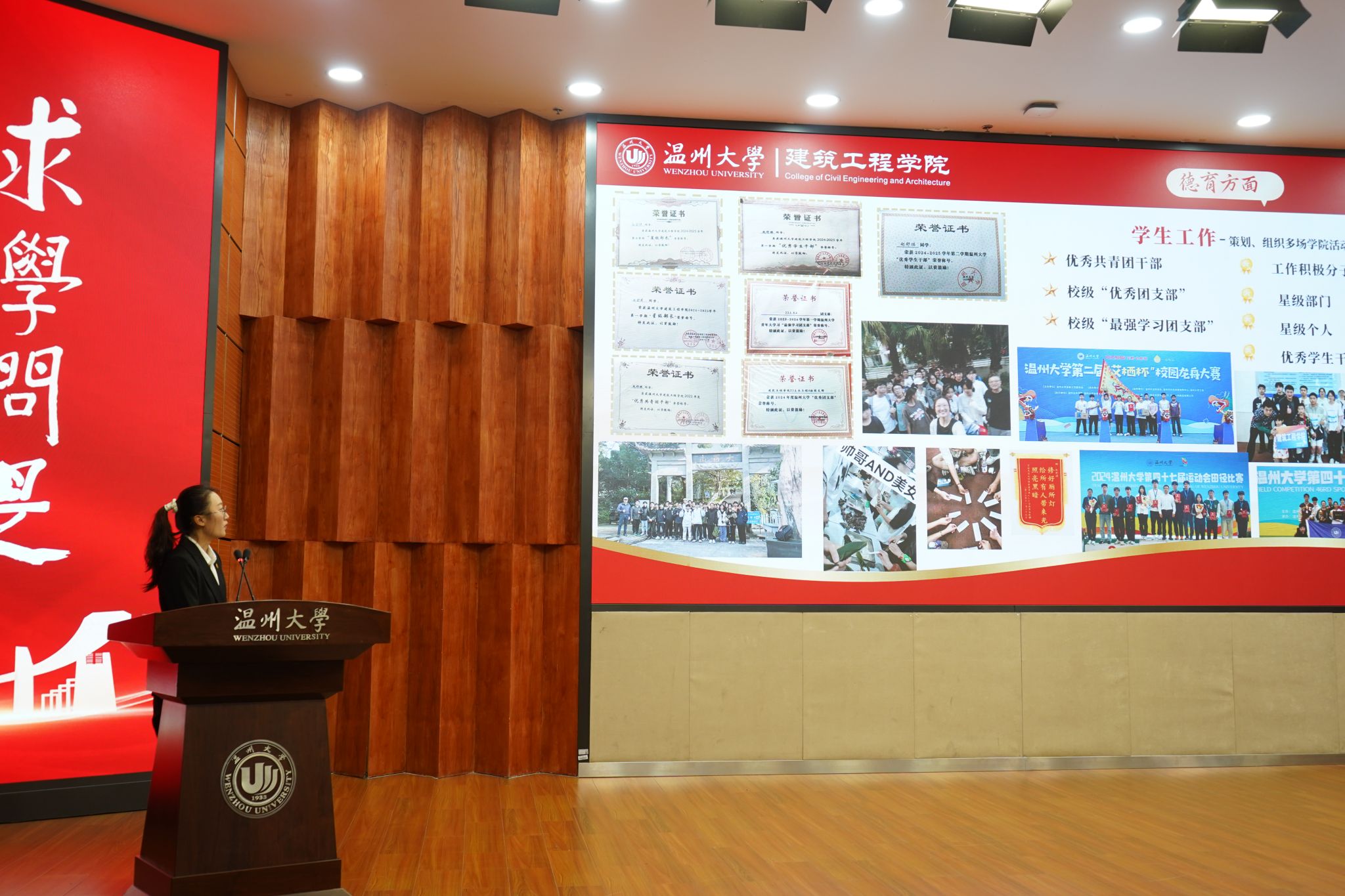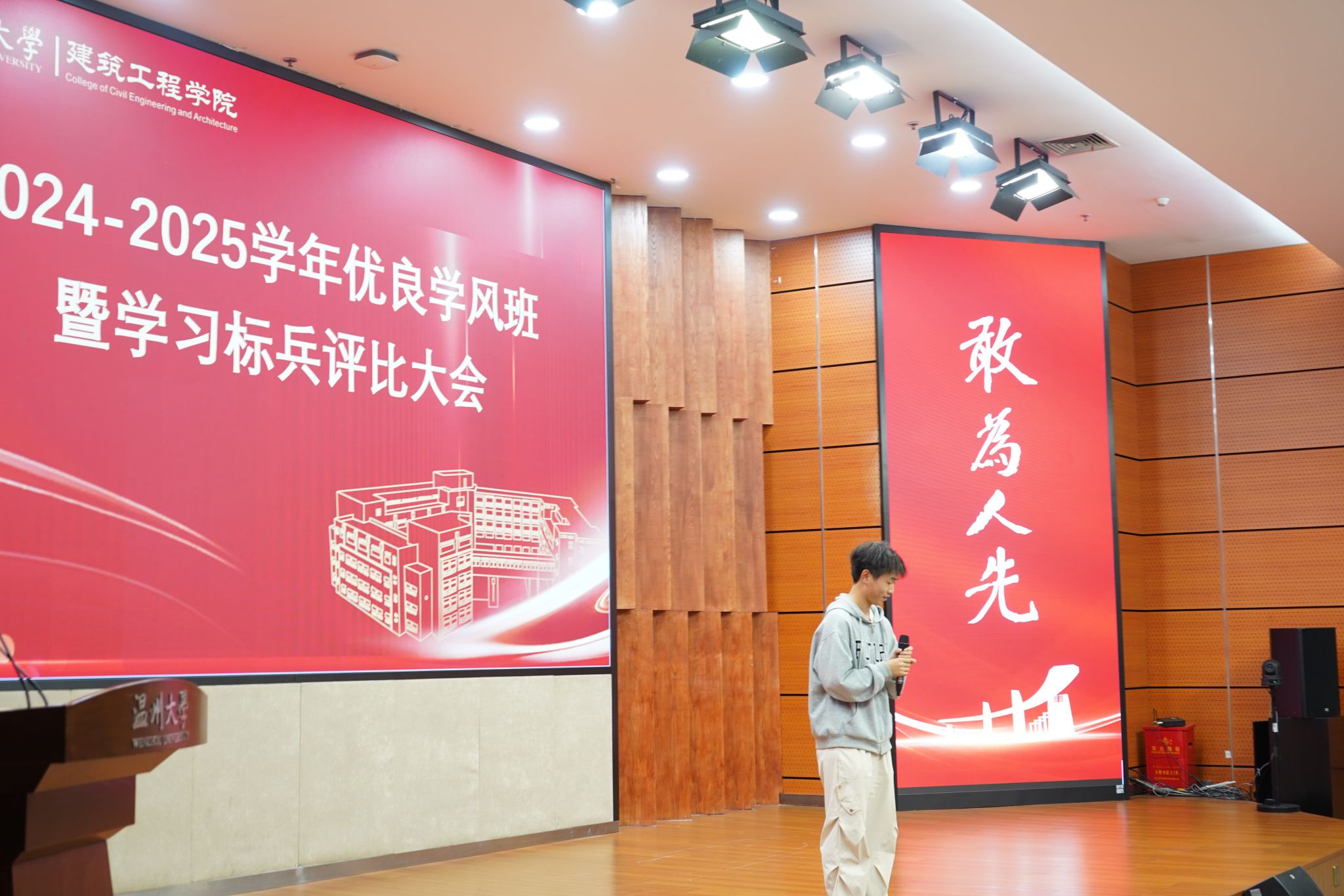经评委团综合考量各班级的学业表现、班风建设、活动开展及现场展示效果,最终评选出五个“优良学风班”,分别为:24建筑1班、24地空班、23地空班、23建筑1班和23建筑2班。教师代表徐旭、按打日拉为获奖班级颁发证书。