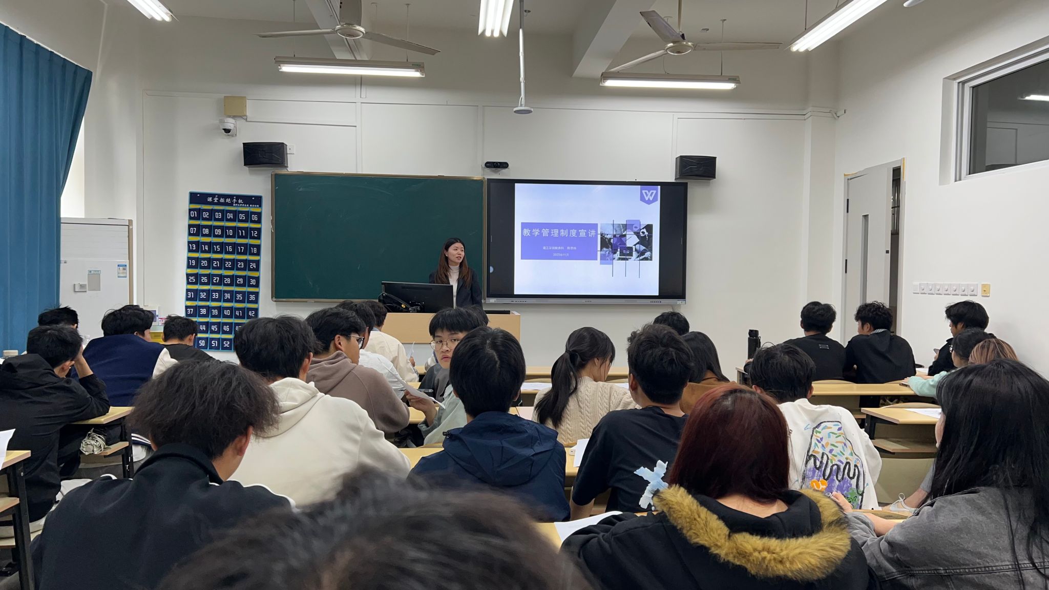 宣讲会上,陈思玮副科长围绕大学学习的核心框架,重点讲解了人才培养方案、学籍管理、学分制以及学位授予制度四个关键板块。她强调,教学管理制度是保障学习秩序、维护教育公平、确保培养质量的基石,准确理解和严格遵守这些规定,是同学们顺利开启大学旅程、达成学业目标的前提。