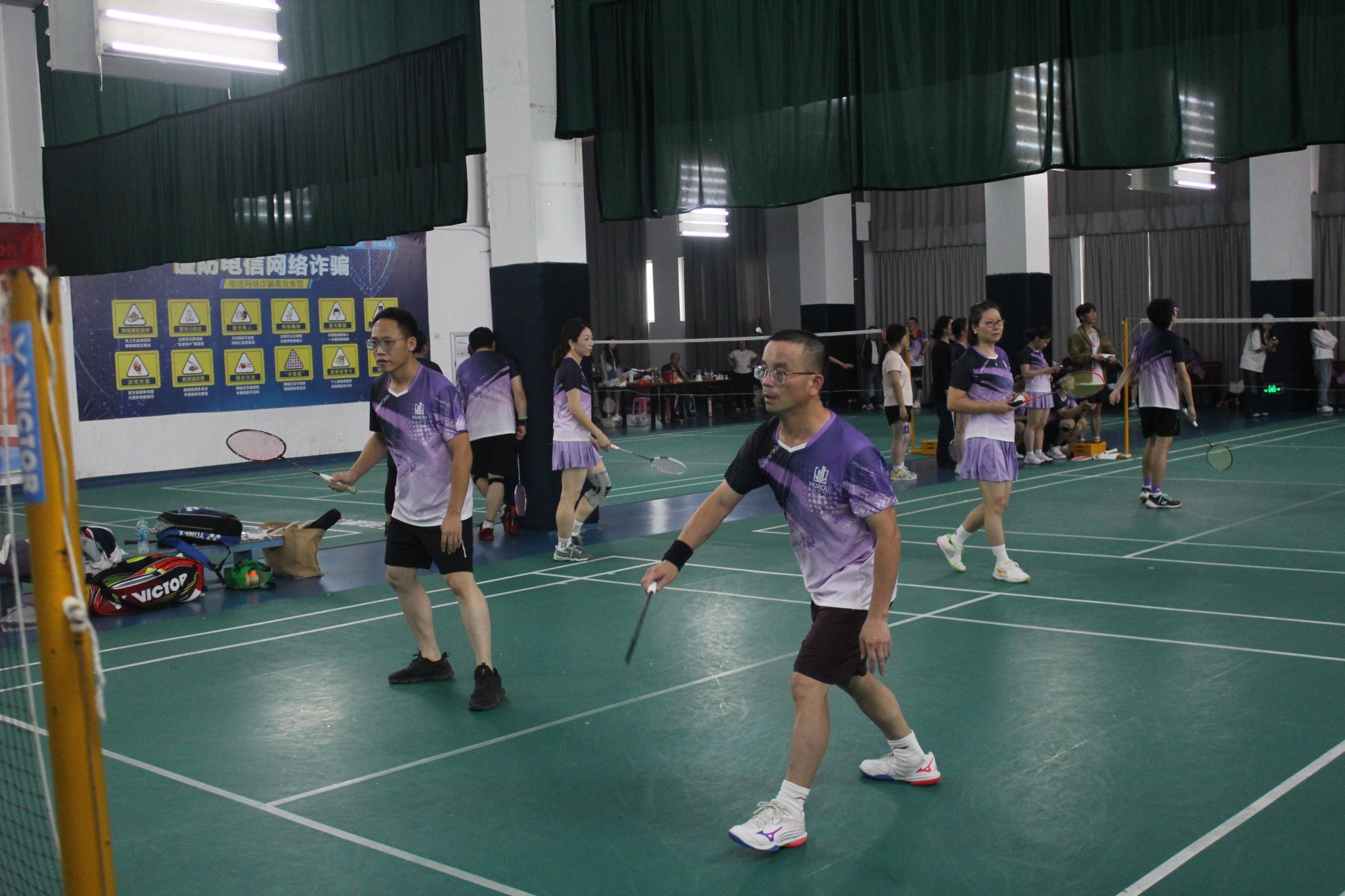 本届校友羽毛球联谊赛设有男子双打、女子双打、混合双打三个竞赛项目,赛事组织规范有序且氛围轻松融洽。赛前,参赛校友们通过有序的抽签分组确定对阵格局,随着分组结果全部公布,比赛正式拉开帷幕。