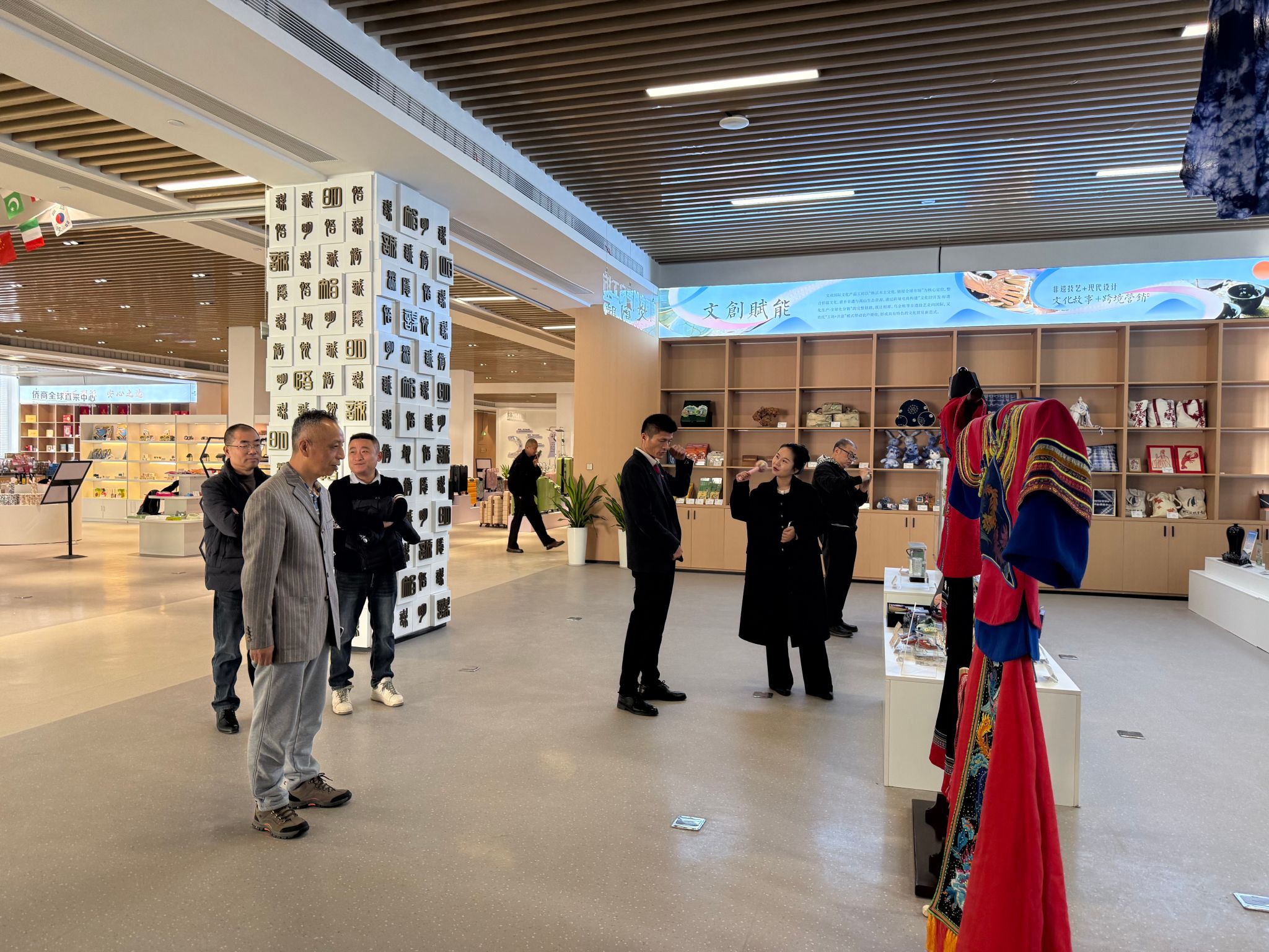 建筑工程学院党委书记王壮一行率先前往文成跨境电商产业园,在园区讲解员的引导下,详细参观了产业园的创业孵化空间、共享直播间、全球选品中心等功能区域。讲解员介绍了产业园依托文成侨乡优势打造的特色发展模式,以及在人才孵化、物流配套、金融扶持等方面的多维服务体系。