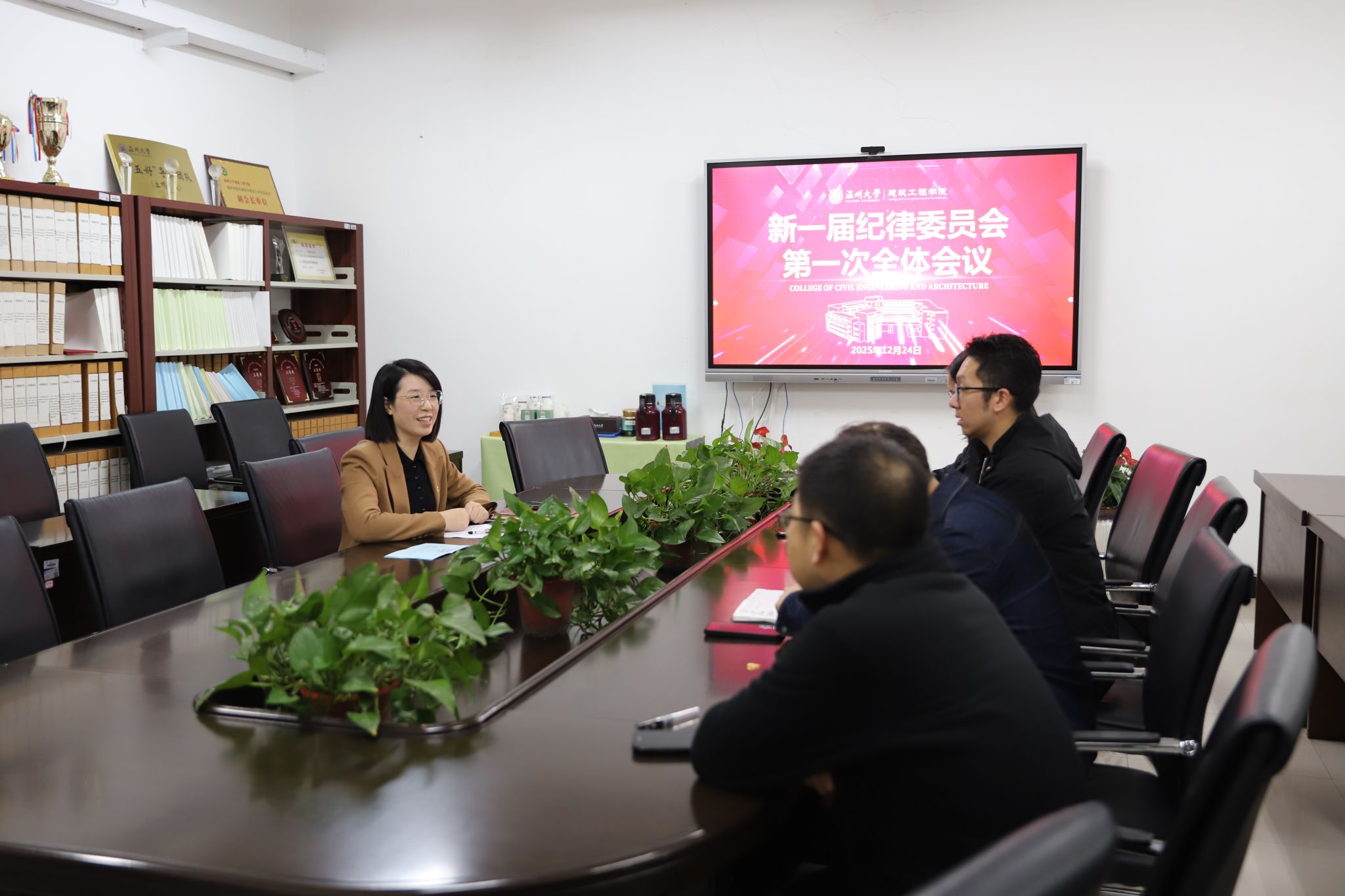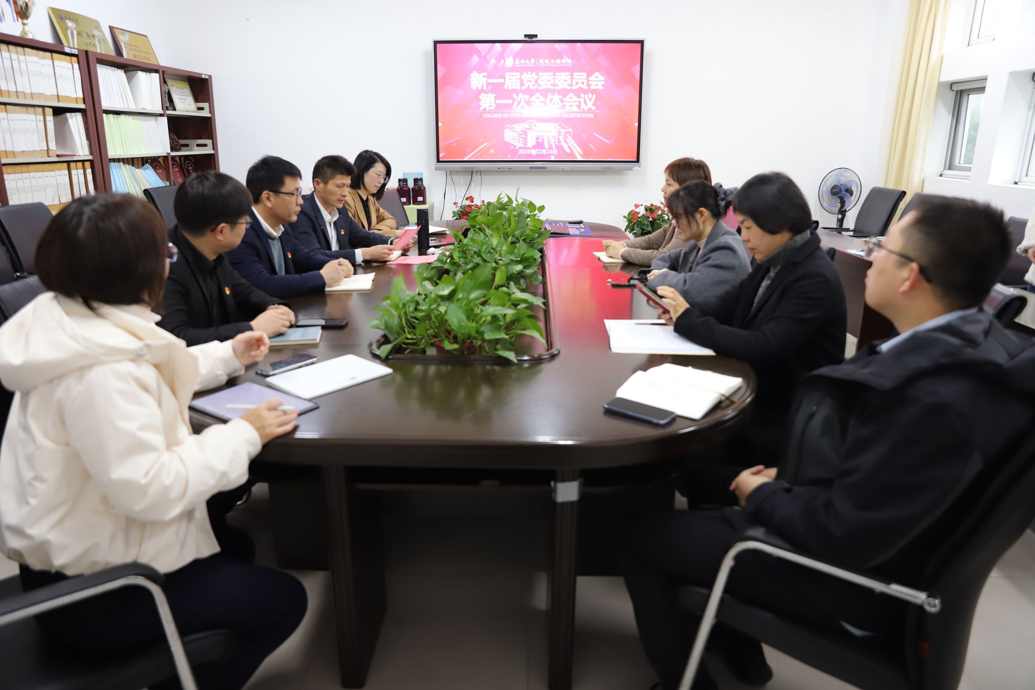 2025年12月24日下午,中国共产党温州大学建筑工程学院党员大会在岩松堂步青厅召开。