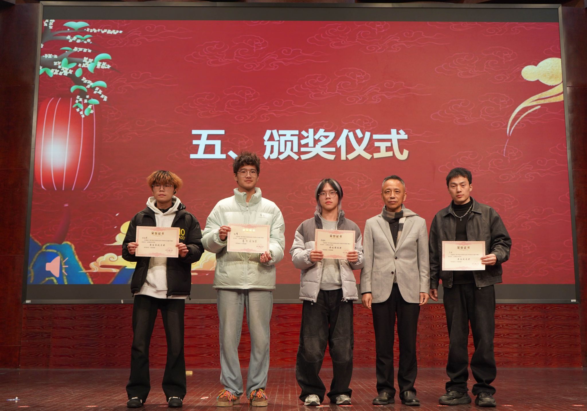 建工学院党委副书记郑航芝与校友会会长蒋维清为优秀表演者颁发荣誉奖项。