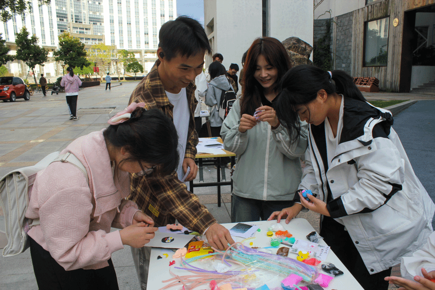 2024年11月16日午后,建工楼中庭变身为一座充满欢声笑语的创意工坊,一场主题为“巧手工艺,暖冬之礼”的游园会在此温馨启幕。阳光穿过榕树,洒下斑驳光影,为这场冬日盛会增添了几分暖意与生机。活动在每个人的心中播下了温暖与创造力的种子,促进了心理健康与情感交流。