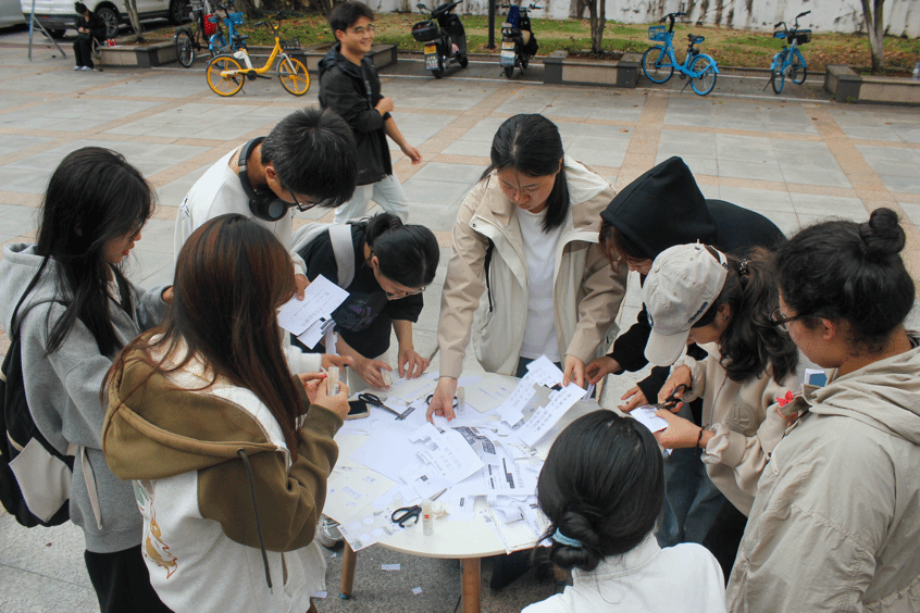 活动现场,同学们在KT板上以创意绘画的形式签到,彰显了他们的个性。这些独一无二的图案不仅作为签到之用,更彰显了内心的自我。活动伊始,同学们便全身心投入到“冬意拼贴诗”的创作热情中。他们精选出文字材料,巧妙地将之融合,编织成一首首诗篇。这些创作出的诗句为他们的心灵注入了宁静与慰藉。打造美好的事物,恰是他们内心美好情愫的直接流露。随后,“寻找校园小角落”活动带领着同学们开启了一场发现之旅。他们手握照片,穿梭于学院的隐蔽之处,找寻那些平日里被忽略的风景。这唤起了他们对自然之美的深层次感悟,找到了一份心灵的宁静与释然,去追寻那些充满美感的存在。在“扭扭粘土”手工活动中,同学们用扭扭棒和粘土创作出了独一无二的艺术品。这些作品展示了同学们的灵巧和创造力,直接反映了同学们的内心世界,每一件作品都充满了爱与关怀。在“手绘小灯笼”的活动中,同学们以画笔作桥梁,以颜料为伴侣,将每个灯笼点缀得别具一格。这些灯笼满载着同学们的奇思妙想和对美好事物的追求与喜爱。游园会新增了一项别开生面的套圈游戏,同学们所获得的不仅是一份物质奖品,更多的是内心的愉悦与精神的满足。