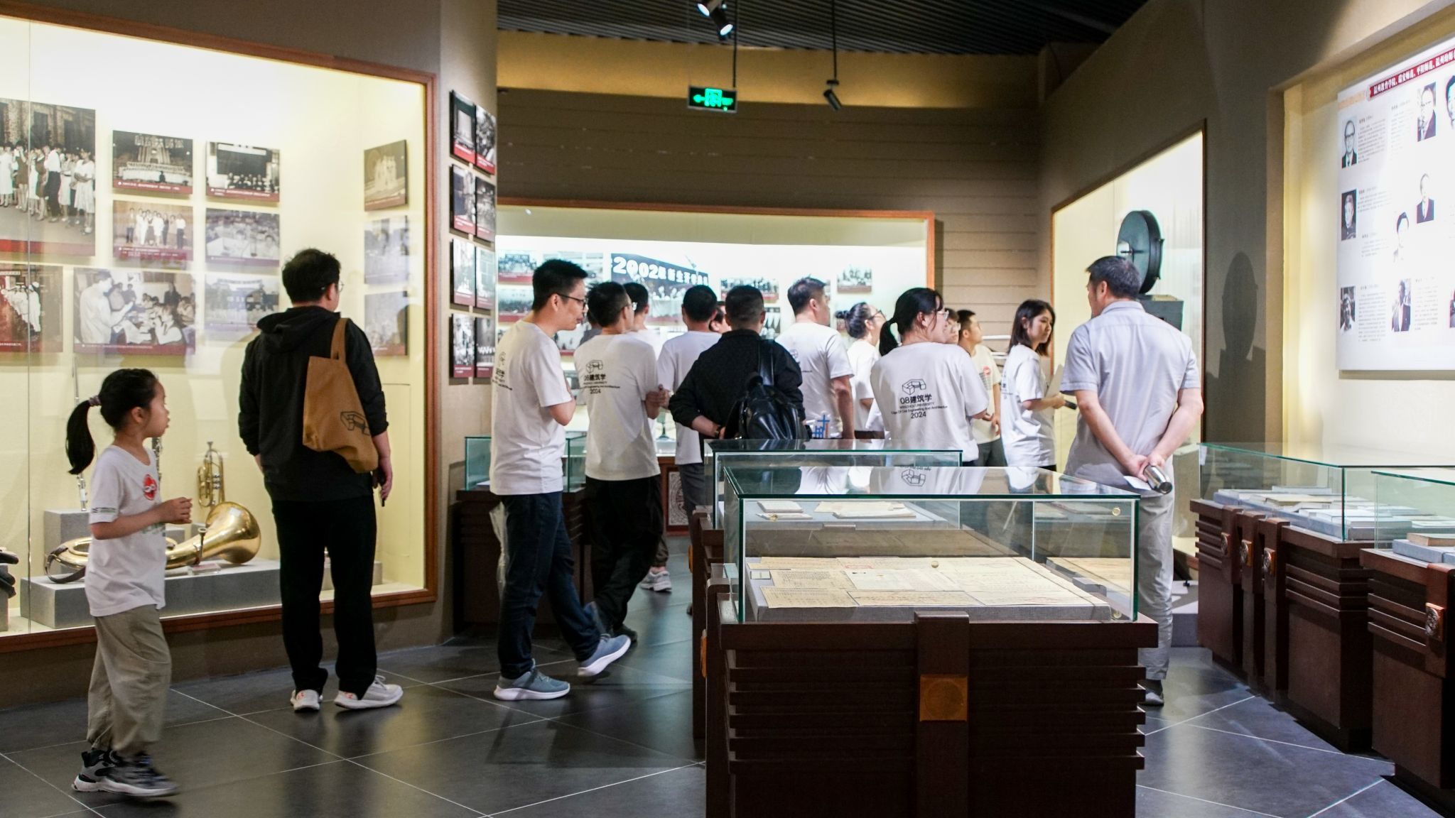 班长贺杨在同学会上对到场的学院领导、老师、同学表示衷心的感谢,随后通过精心准备的照片,带大家共同回忆了曾经的美好岁月。贺杨说道,所有建筑班的同学不仅一起上课,还一起在这间教室里画图,一起经历过熬夜通宵,一起去过很多城市,包括安徽宏村西递、江西婺源、苏州、上海、厦门福建土楼,有许多美好的回忆。紧接着,到场的同学重新作自我介绍,畅聊个人近况和近十年发生的故事。在欢声笑语中,同学们之间的距离更近了,感情更加深厚了。随后,各位校友跟随讲解员的步伐,共同参观温州大学校史馆。从学校的创办起源到如今的蓬勃发展,每一个阶段都见证了无数人的努力与奉献,大家共同领略温州大学的辉煌历程。