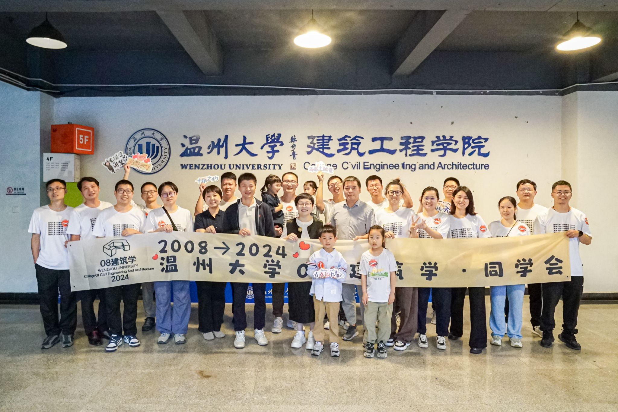 在温州大学建筑工程学院办学40周年之际,我院08建筑学校友在10月19日返校重聚。建工学院党委书记王壮、学工办主任郭瑞芬、徐婷俊老师、周永云老师受邀一同参与08建筑学十周年同学会。