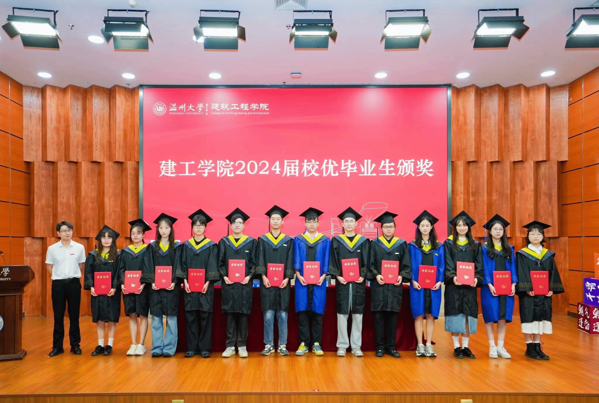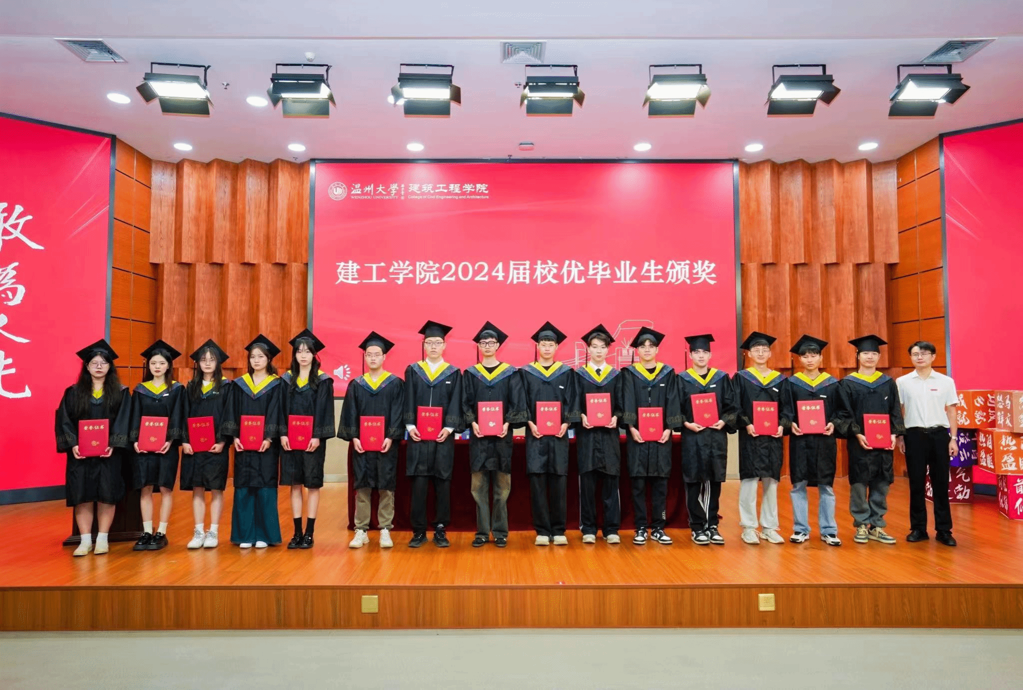 典礼仪式上,陈铎副书记宣读了2024届省级和校级优秀毕业生的表彰名单,蔡盛毓等13名同学获2024届省级“优秀毕业生”荣誉称号,李雪等50名同学获2024届校级“优秀毕业生”荣誉称号。吴冬雁副院长和符洪涛副院长分别为省级优秀毕业生和校级优秀毕业生颁发证书并合影留念。