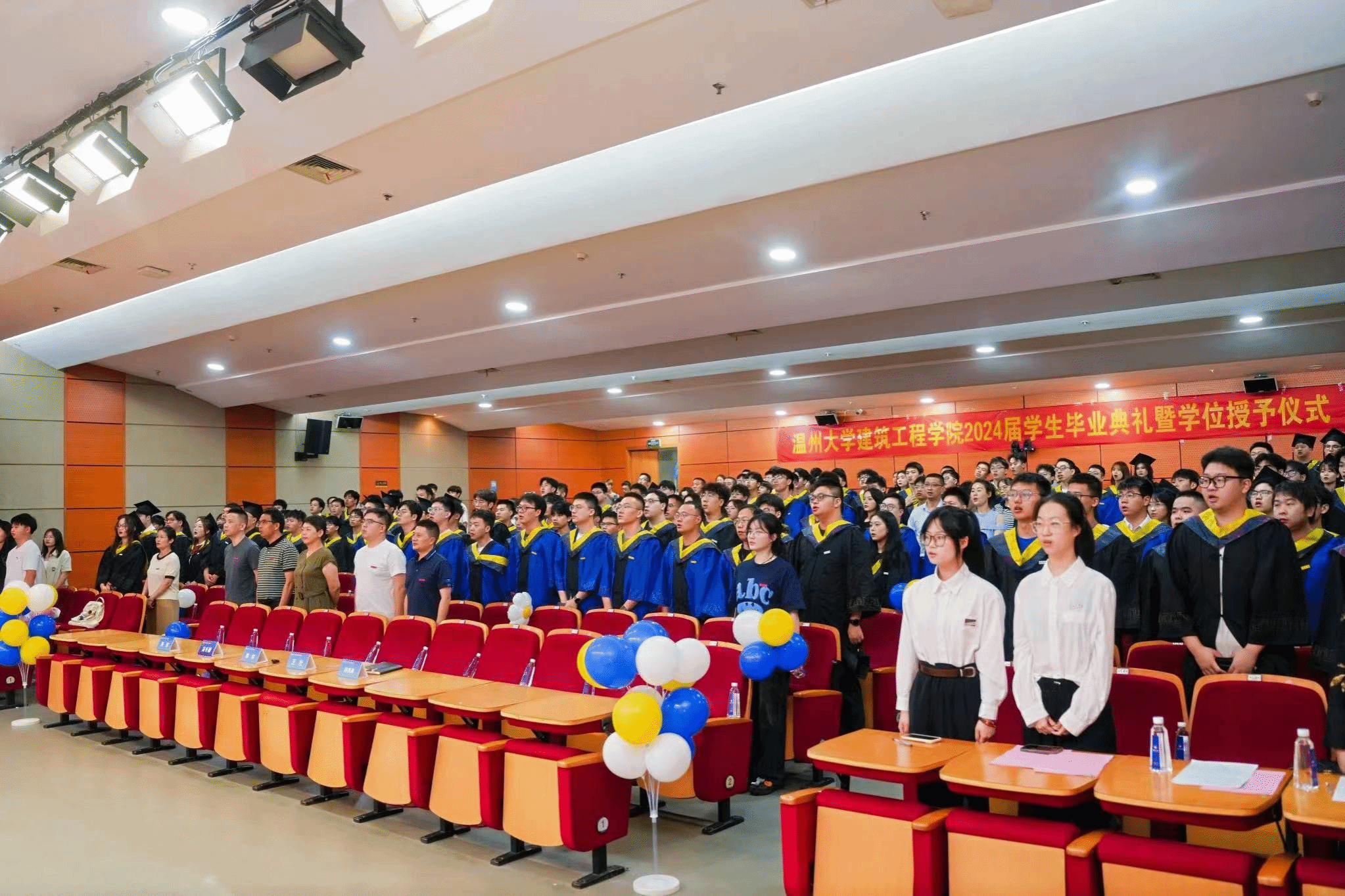 全体师生共同唱响《温州大学校歌》,以激昂奋进的旋律表达对母校的祝福和热爱,凝聚砥砺前行的力量。毕业典礼在熟悉的旋律中落下帷幕。