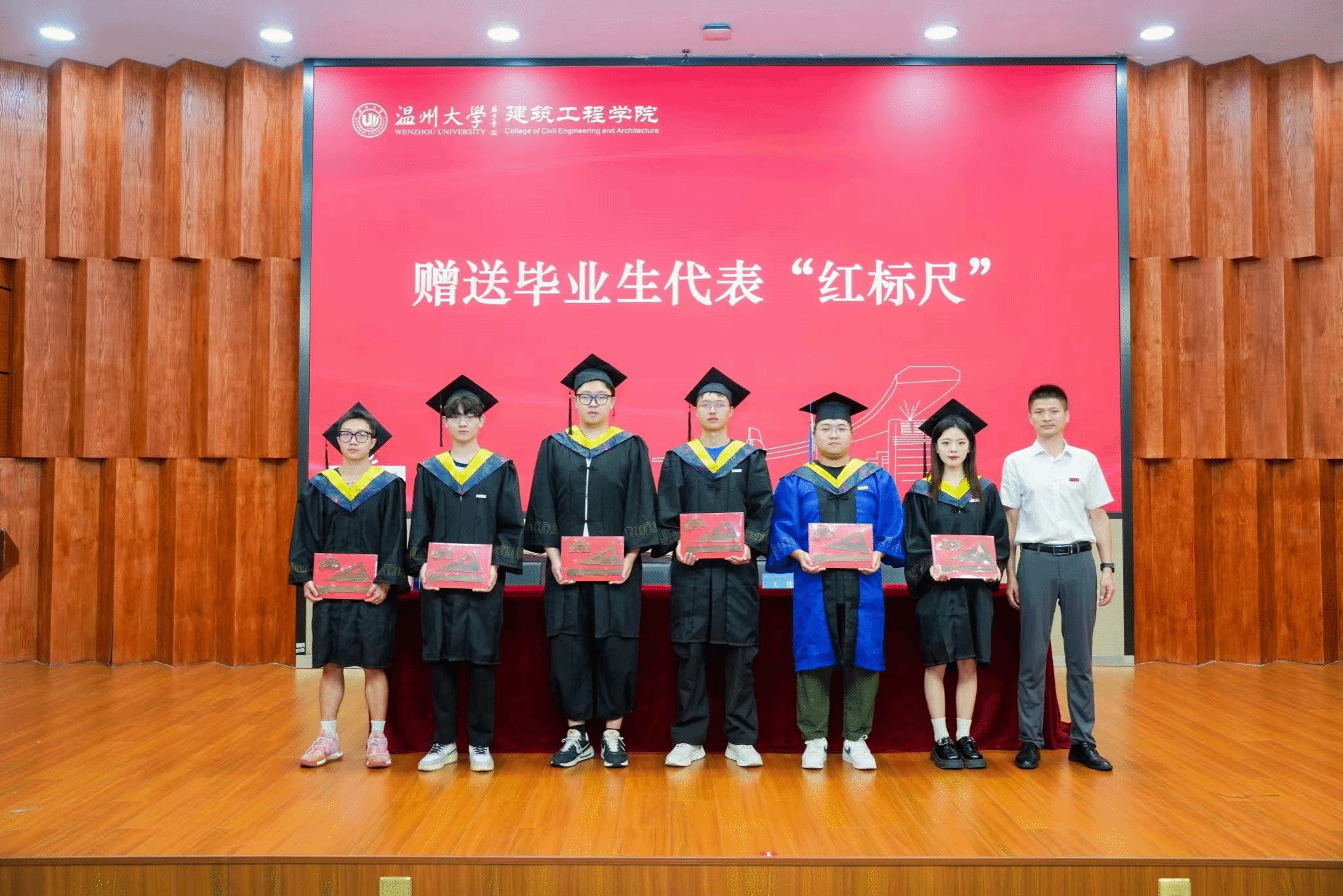 王壮书记为毕业生代表送上学院精心准备的毕业礼物“红标尺”。