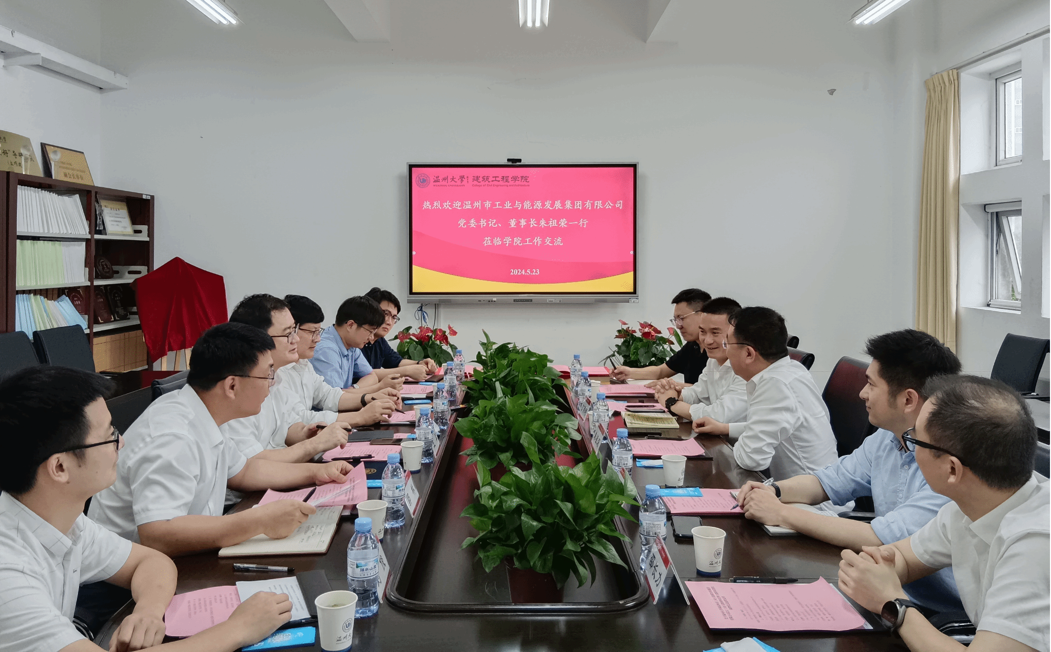 2024年5月23日下午,我院与温州市工业与能源发展集团签署设立工业与能源科技博士创新工作站,标志着我院签署的第十九家博士创新工作站正式成立。温州市工业与能源发展集团党委书记、董事长朱祖荣,战略规划部经理孙克臣,温州市能源发展有限公司党支部书记、董事长丁明利,党支部委员、副总经理邵长力等一行来院交流,校党委委员王军,院党委书记刘青松,副院长郭林,青年博士刘俊、倪俊峰出席了会议,郭林副院长主持签约仪式。