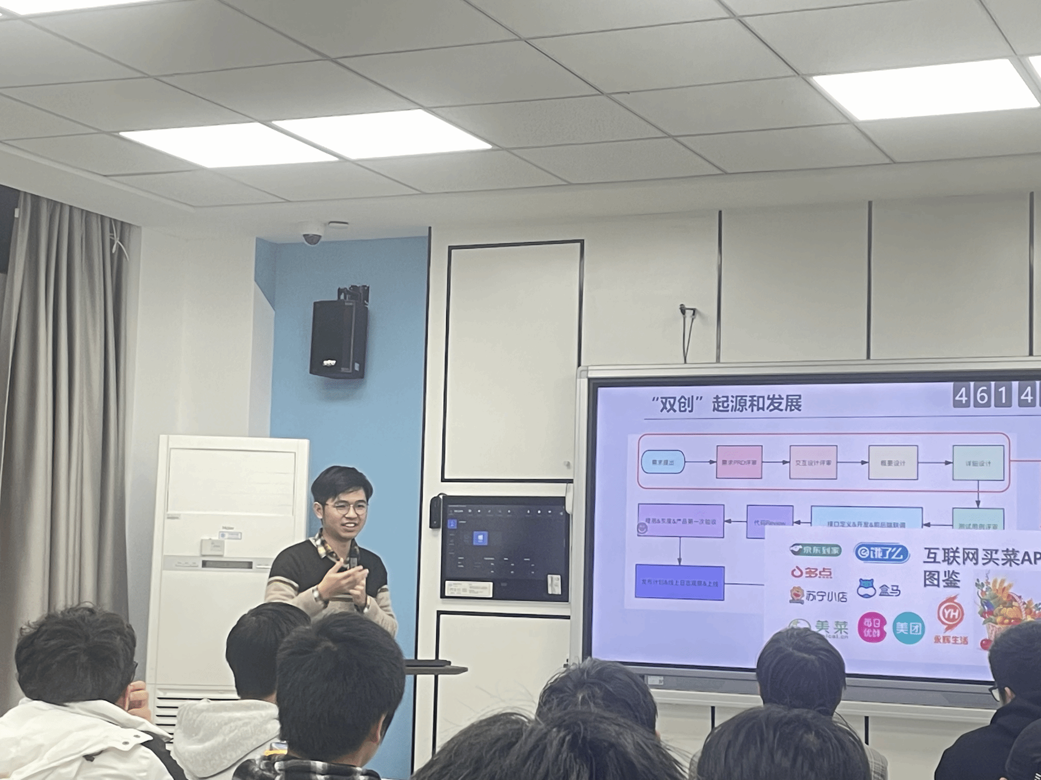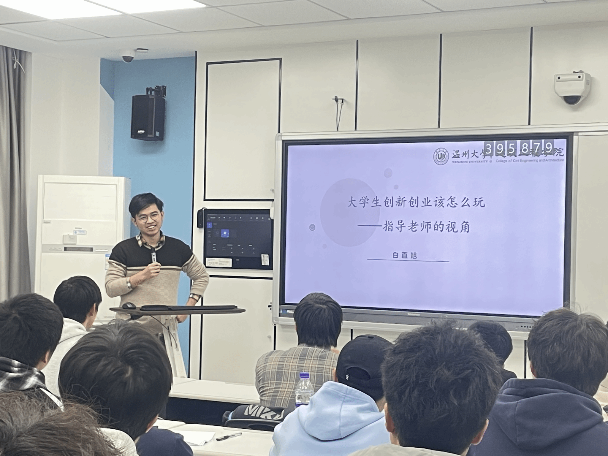 白老师以“大学生创新创业该怎么玩—指导老师的视角”为题,介绍了“双创”起源和发展、创新与创业的联系和区别,以及低年级同学该如何规划自己大学生涯的创新、创业之路。授课中,白老师以“赏风听雨”工作室三年来所参加的竞赛、各项创新项目的申请为例,从团队建设、导师选择、项目书撰写三个方面做了重点讲解,帮助同学们进一步明晰创新、创业方式的关键与项目培育打磨措施。