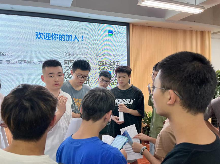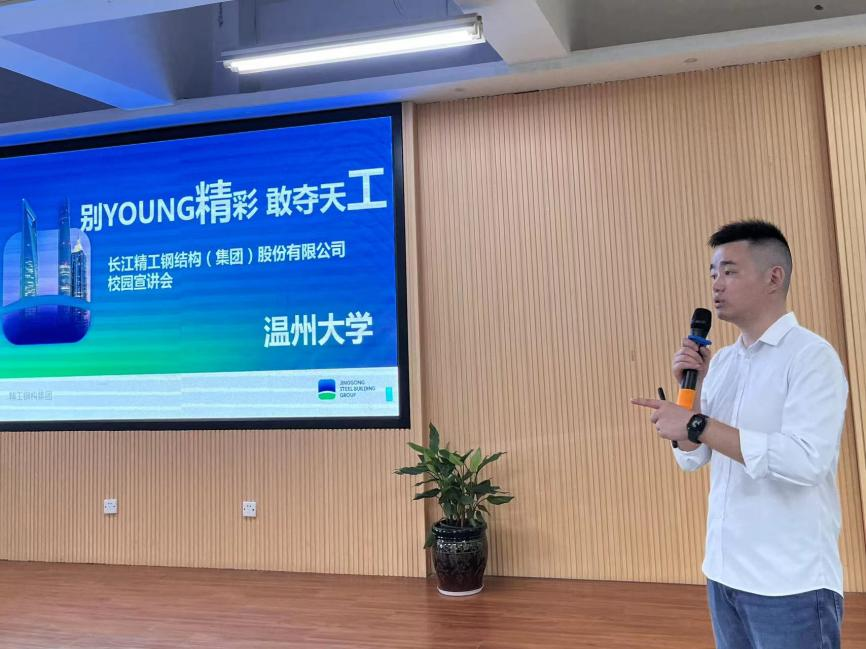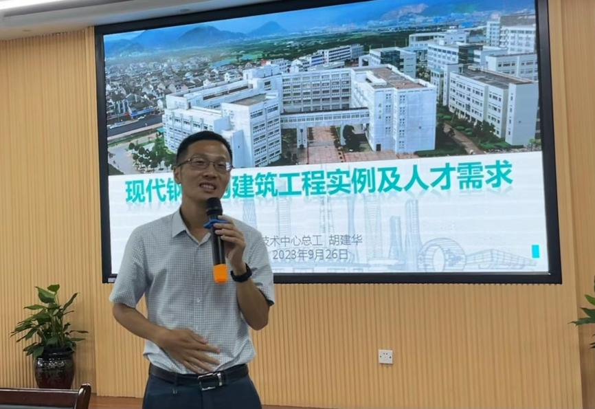 在招聘宣讲会上,企业相关负责人胡建华对钢结构发展、结构体系,以及精工钢结构技术及实践进行阐述,并以图片、视频的形式展示目前所取得的的体育场馆、机场航站楼等方面的业绩,生动刻画了企业独有的“专业协同”“集成服务”发展模式,在钢结构建筑领域持续引领发展的不竭动力。