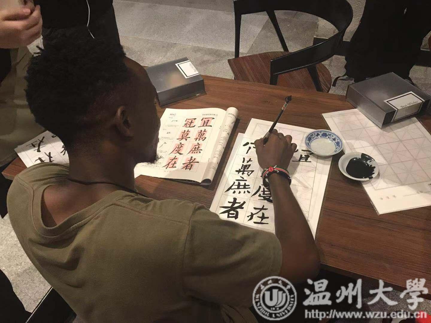 在活动上,为了让留学生更深入体验中国传统文化,建工学院书法协会成员亲自教授留学生书写毛笔字,虽然有些生疏,但他们全神贯注、敢于尝试的精神是值得肯定的。在书法协会成员的帮助下,留学生们有的写出自己的中文名字,有的写出自己的祖国,欢声笑语传遍了全场。随后,留学生们纷纷与各自的作品合影留念,他们也不约而同的与远在家乡的亲人连线,将自己的作品以及在异国的快乐、温暖分享给了亲人朋友。
