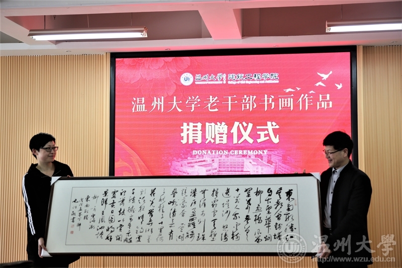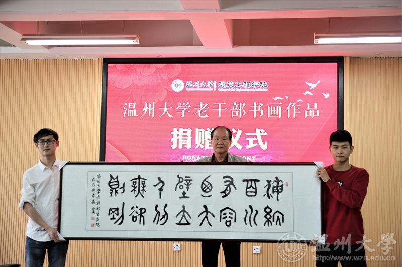 春暖大地,绿意盎然。4月4日上午,校老干部书画院老书画家一行二十人带着十三幅书画作品来到建筑工程学院,这些精美的书画作品受到建工师生们的热烈欢迎。校党委委员、宣传部长潘玉驹,老领导金礼义、林选清、老干部工作部部长陈慧、建工学院党总支书记刘青松,党总支副书记王壮以及老书画家与建工学院师生代表近60人参加捐赠仪式。