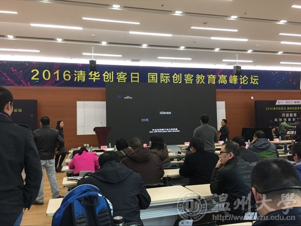 2016年11月26日,第五期清华大学创客日创客导师研修班于清华大学李兆基科技大楼成功举办。本次创客日围绕“探究创客内涵、丰富创客文化传播创客精神、引领创客教育”的目标,开展了为期3天的一系列活动。温州大学建筑工程学院辅导员杜俊一、土木工程专业系主任刘瑾老师,作为学院代表,与我校其他学院的7名老师参与了本次创客导师研修班的各项活动。