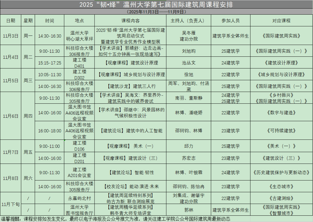 2025“韧•绎”温州大学第七届国际建筑周课程安排