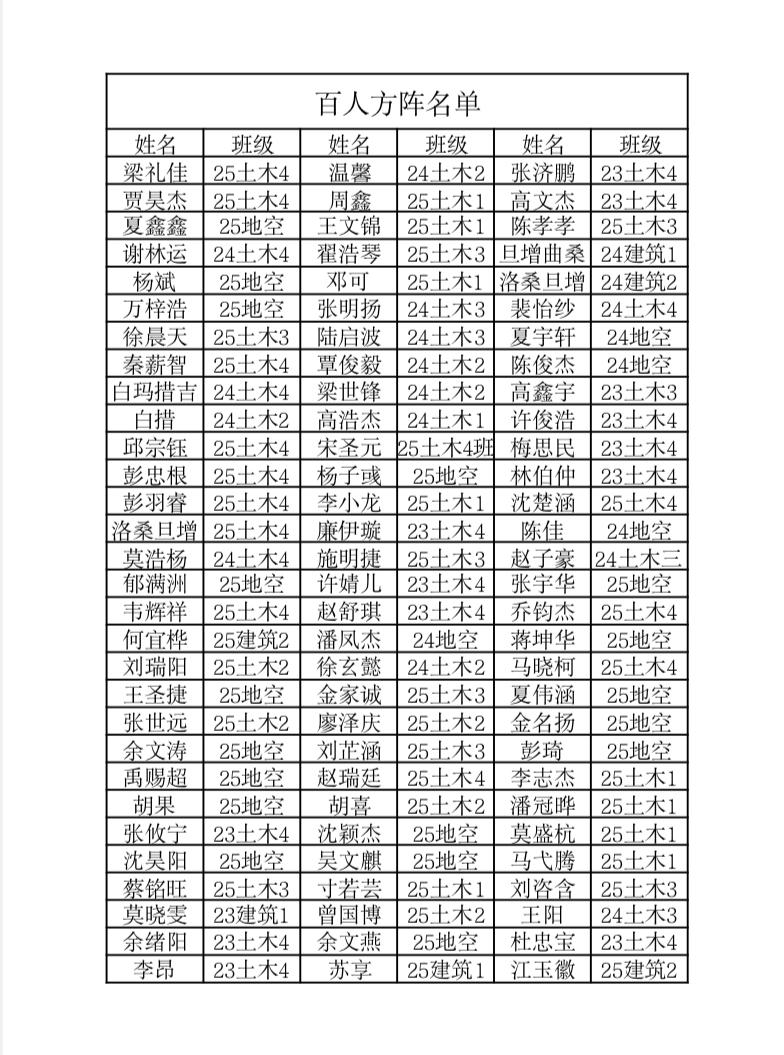 关于第四十八届校运动会建筑工程学院百人方阵通报表扬的名单