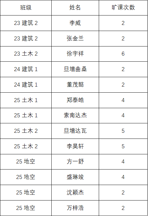 该行为不仅影响个人学业进度,更破坏班级学风建设,造成不良影响。现对以上同学予以全院通报批评,深刻反思错误。如后续再发生旷课等行为,将按照《温州大学学生纪律处分规定》予以相应处分处理。
