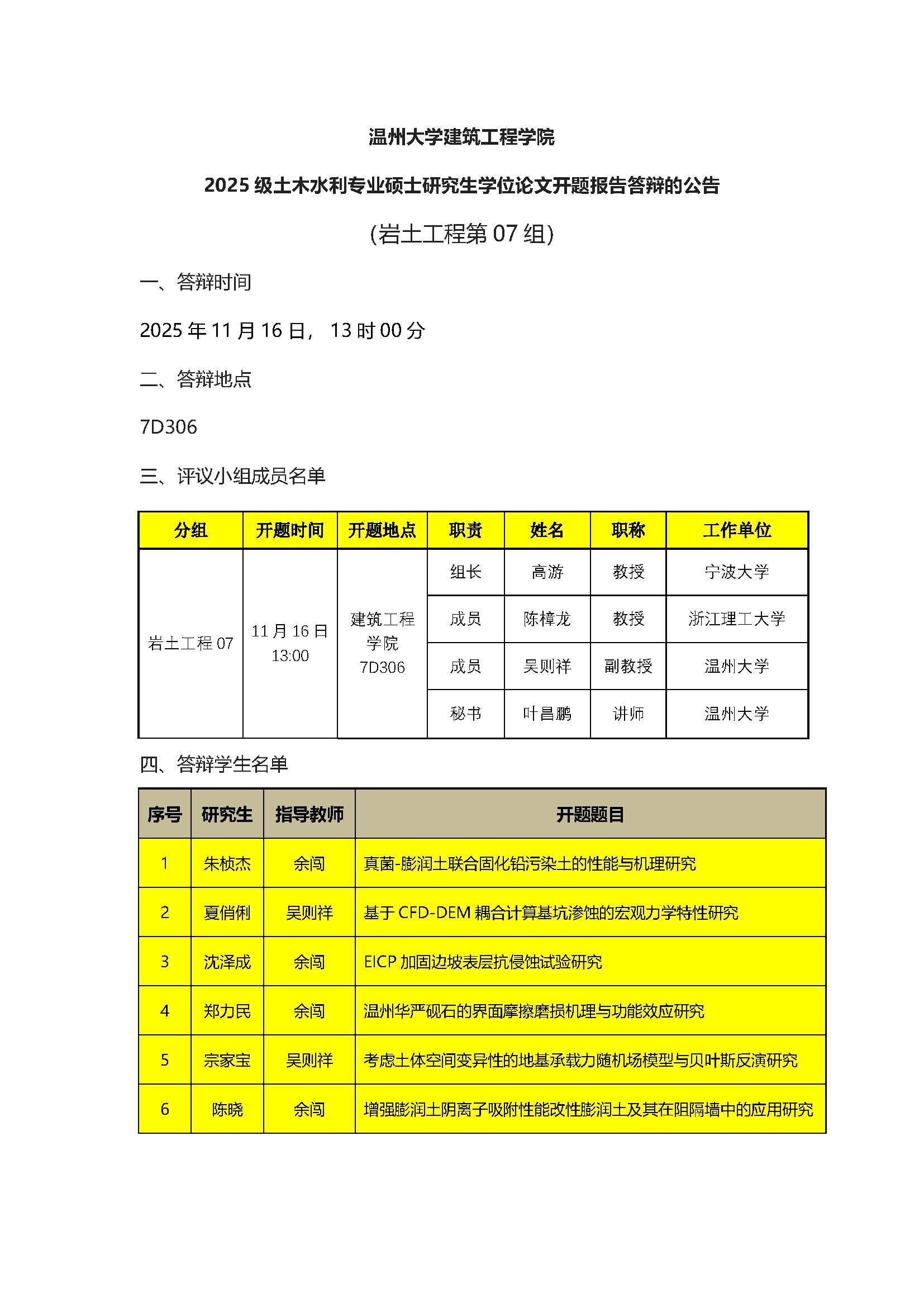 建筑工程学院2024级硕士研究生学位论文开题报告答辩公示(八)
