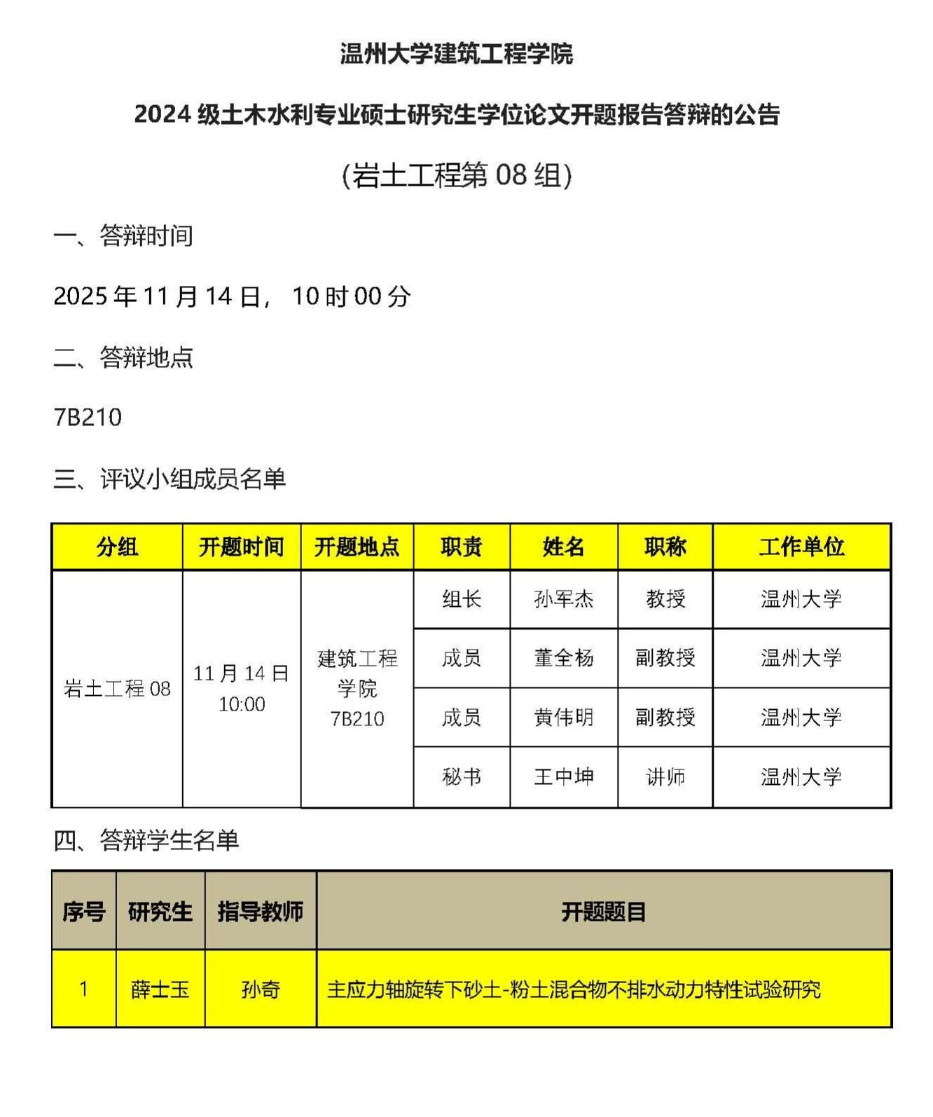 建筑工程学院2024级硕士研究生学位论文开题报告答辩公示(九)
