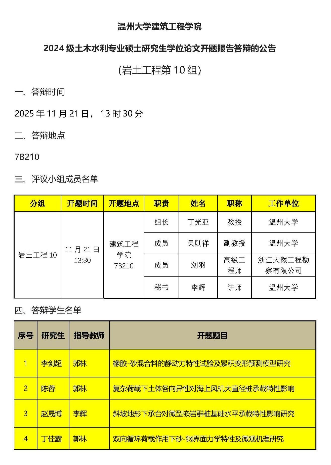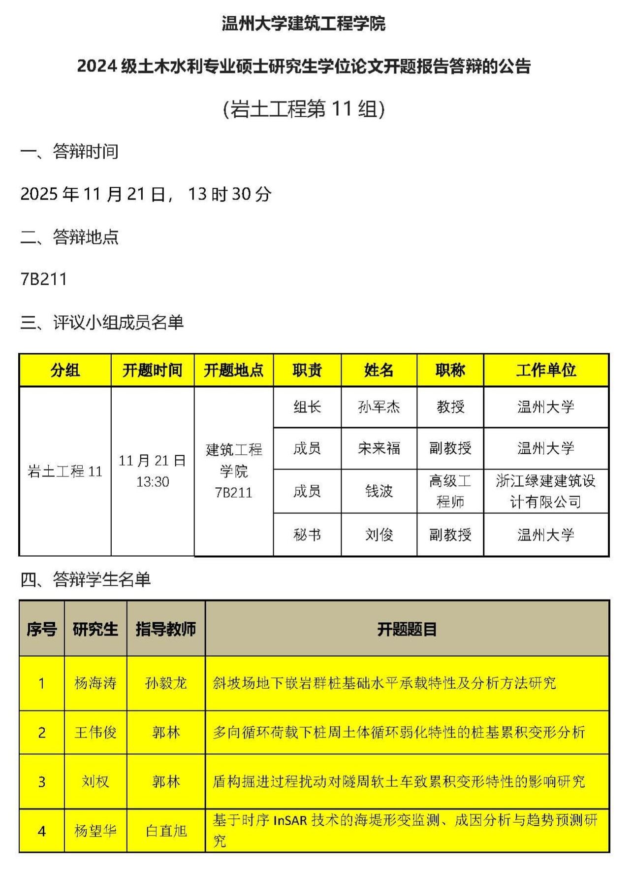 建筑工程学院2024级硕士研究生学位论文开题报告答辩公示(十一)
